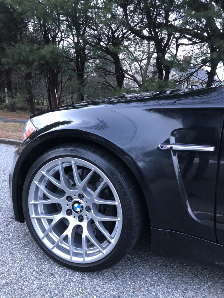 The 1M also received Style 359 19″ split spoke alloy wheels, measuring 9″ in width up front and 10″ out back. Four new Michelin Pilot Super Sport tires were mounted in September 2018, and each corner is detailed up close in the gallery.