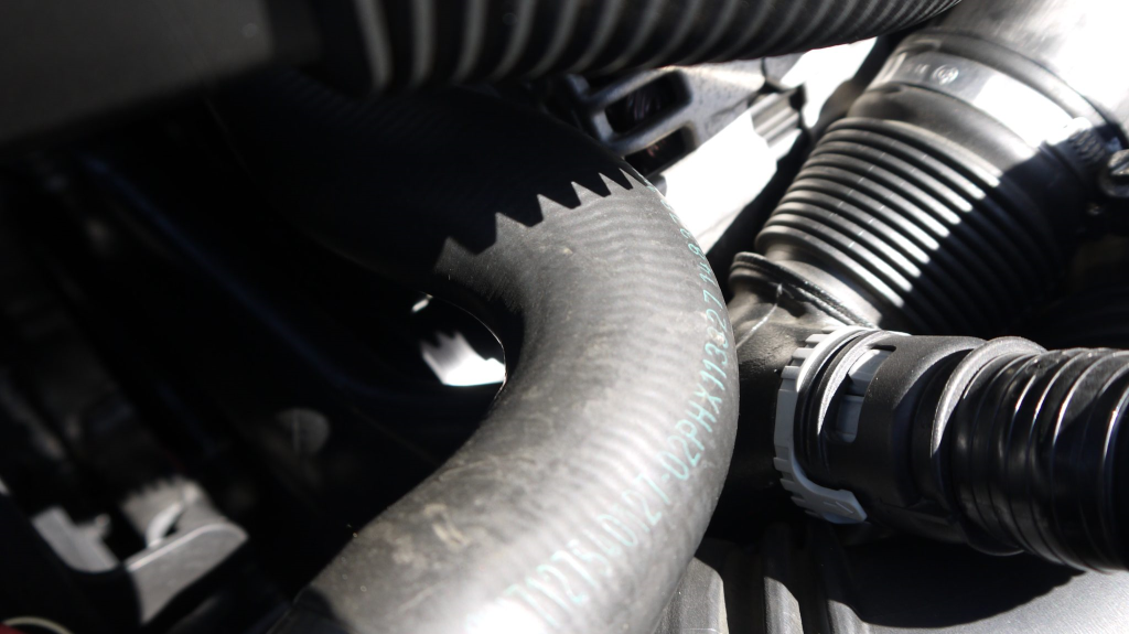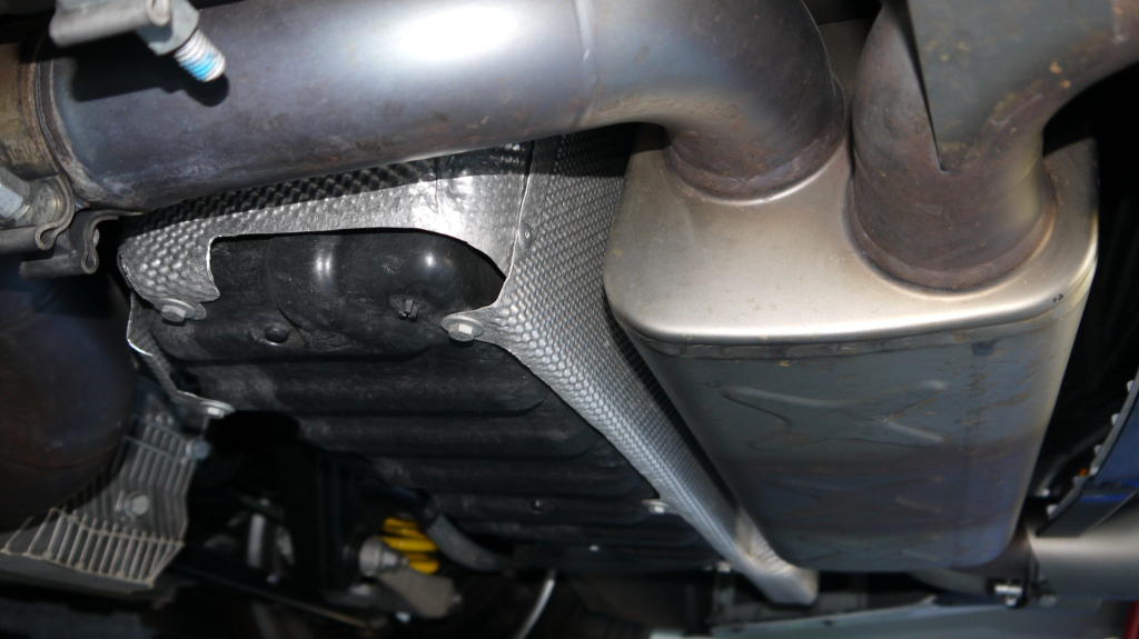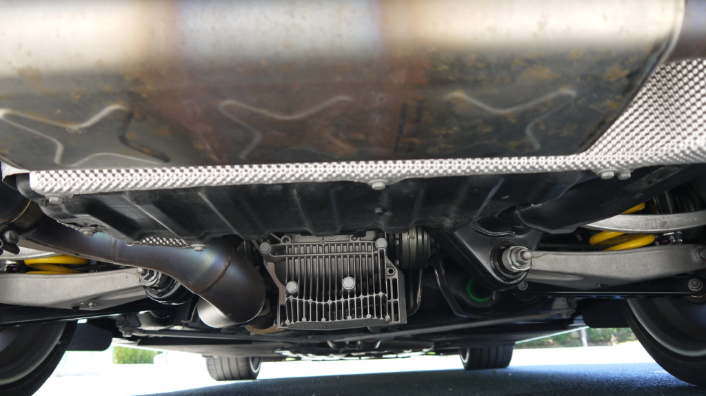 The twin-turbocharged 3.0L N54B30 inline-six is modified with a K&N air filter, an ETS intercooler and charge pipe, and a valved Akrapovic titanium cat-back exhaust system controlled by a switch in the cabin. The most recent oil change was performed in March 2025.