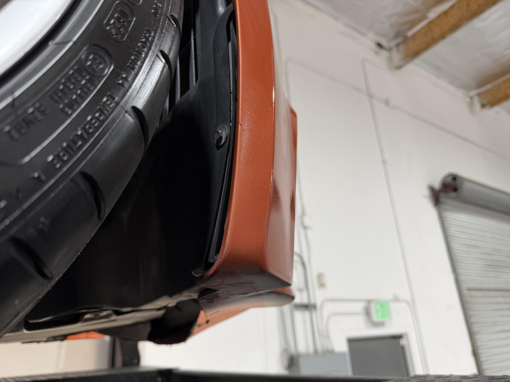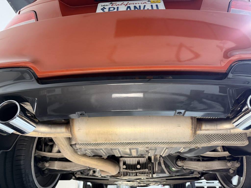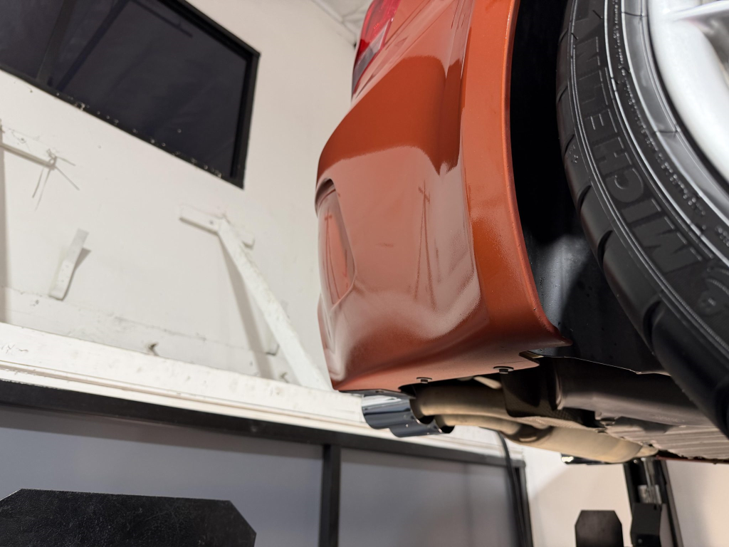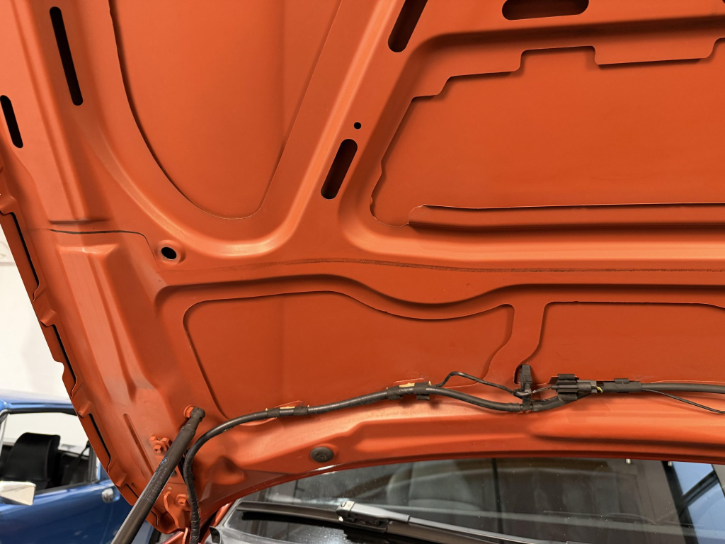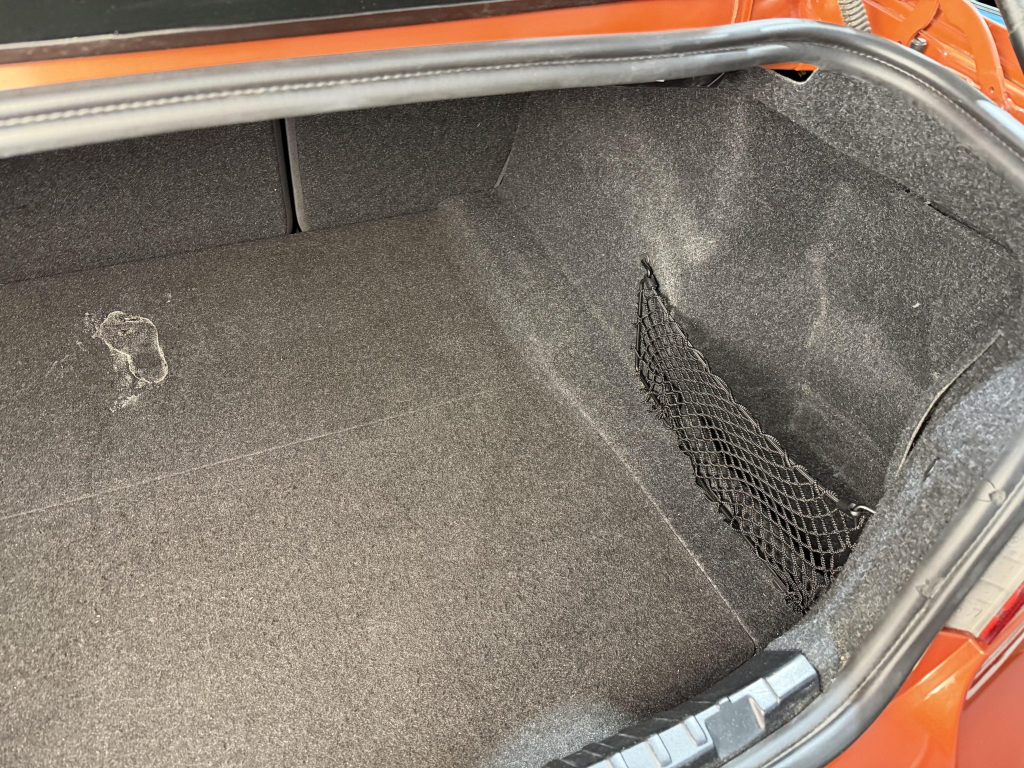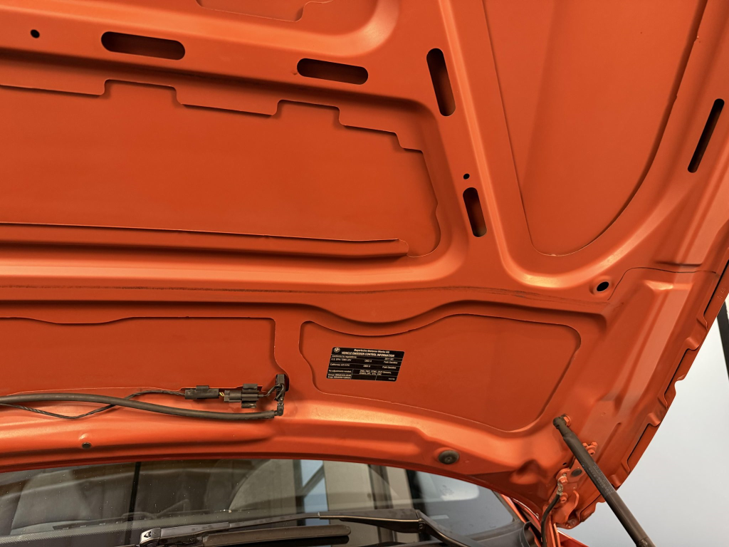This example is one of 435 cars finished in Valencia Orange Metallic (B44) for the North American market, and features model-specific bumper covers, side skirts, flared fenders, and quad exhaust outlets. Additional details include xenon headlights, rain-sensing wipers, a trunk lid spoiler, and LED taillights. A January 2018 entry on the Carfax report lists “minor damage” to the front left corner, while a subsequent entry from December 2021 lists “minor damage” to the front. The bumper covers and roof are said to have been refinished, and close-up photographs of the exterior finish and trim are shown in the gallery below.