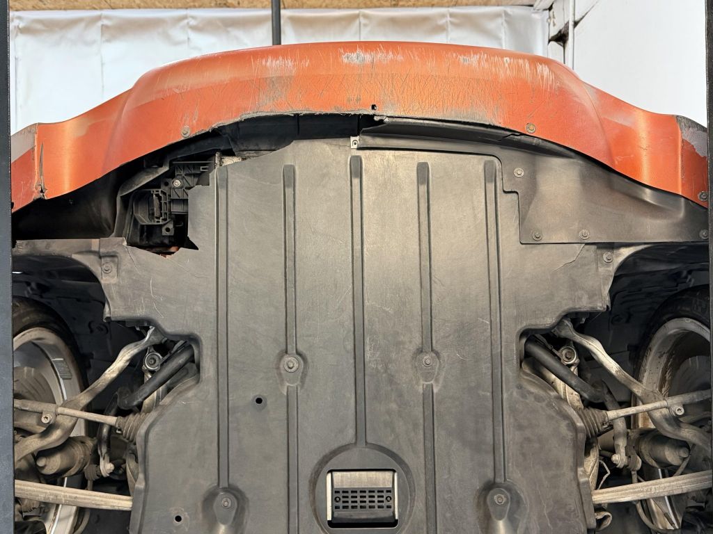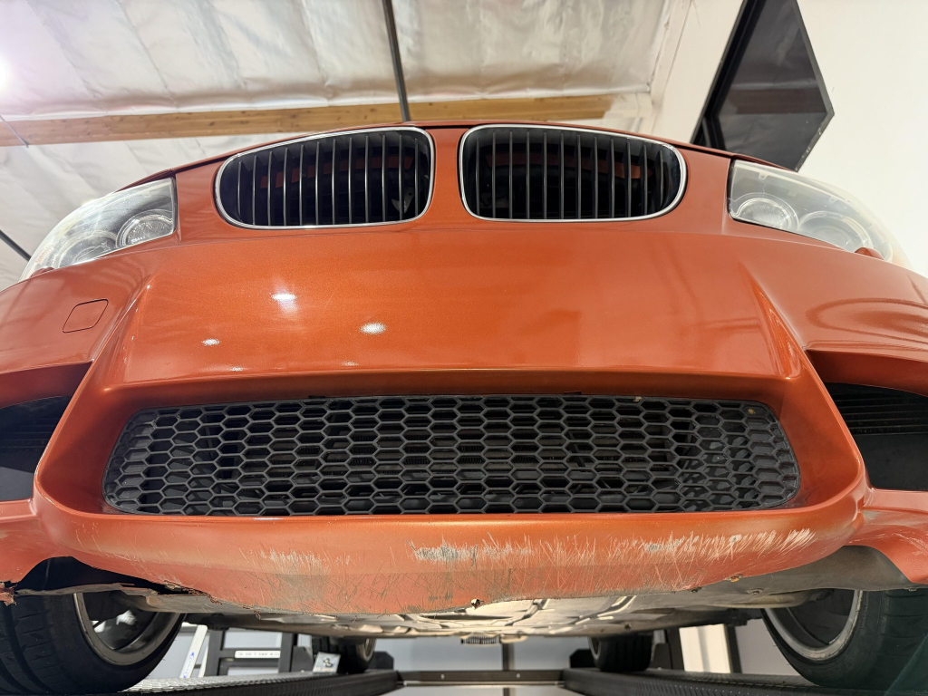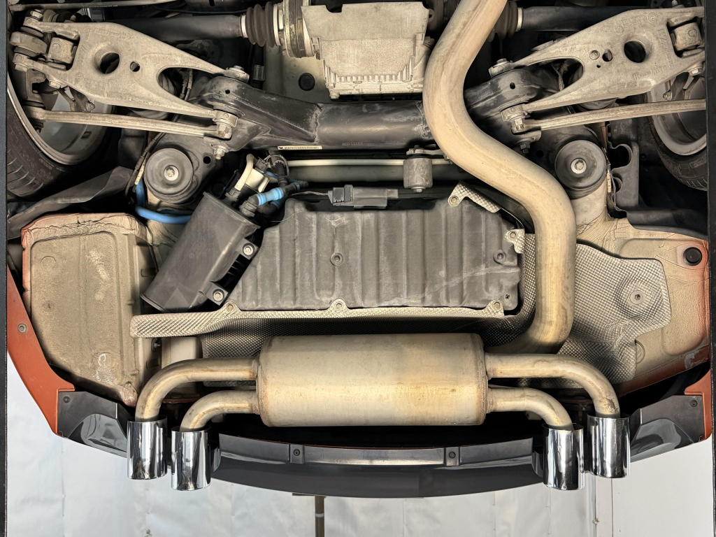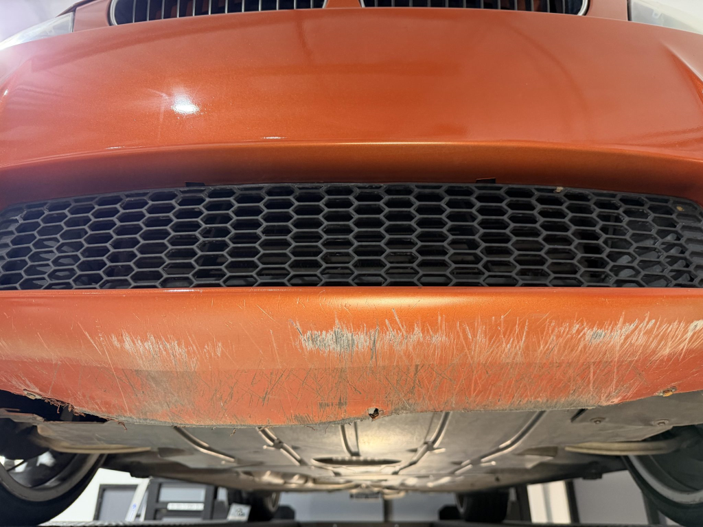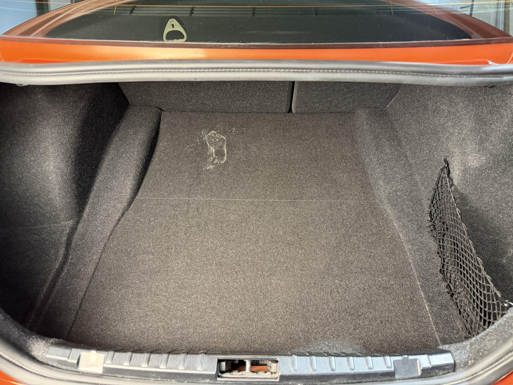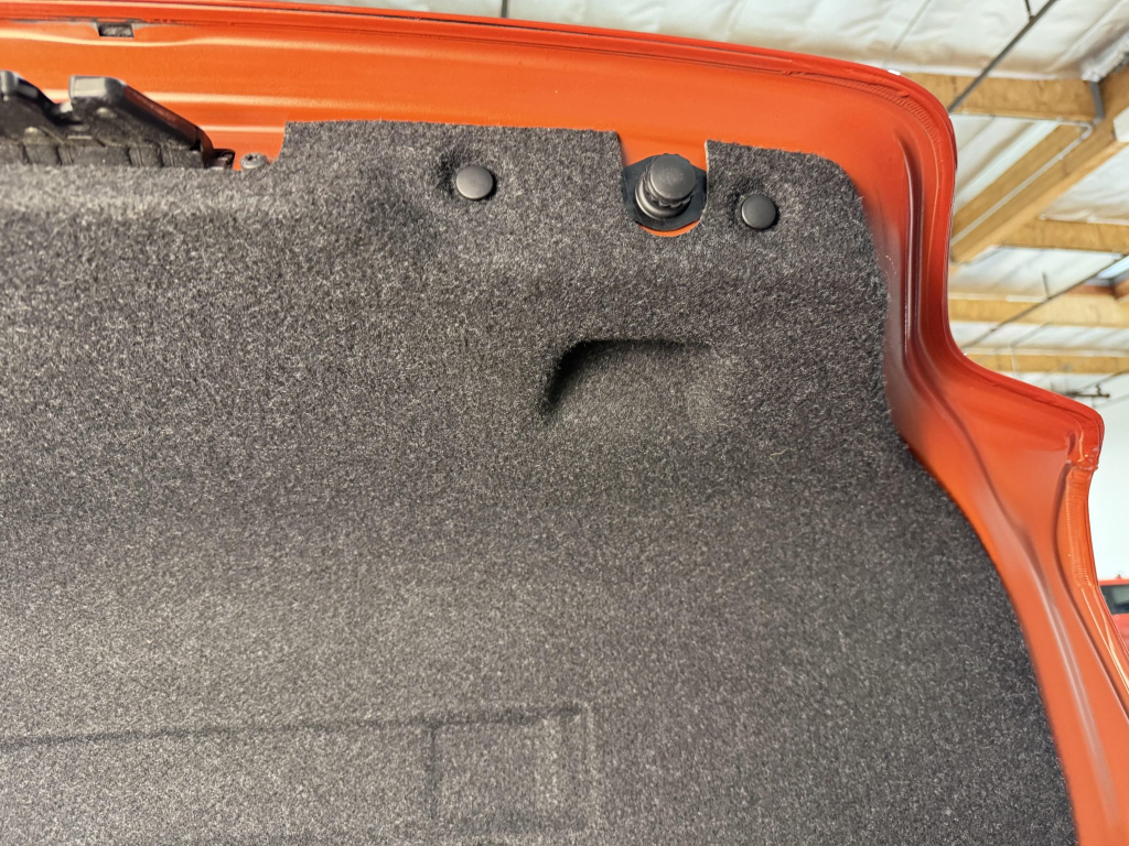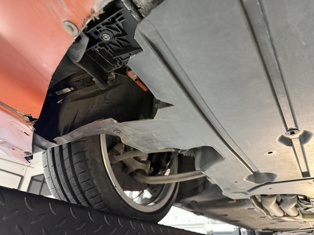This example is one of 435 cars finished in Valencia Orange Metallic (B44) for the North American market, and features model-specific bumper covers, side skirts, flared fenders, and quad exhaust outlets. Additional details include xenon headlights, rain-sensing wipers, a trunk lid spoiler, and LED taillights. A January 2018 entry on the Carfax report lists “minor damage” to the front left corner, while a subsequent entry from December 2021 lists “minor damage” to the front. The bumper covers and roof are said to have been refinished, and close-up photographs of the exterior finish and trim are shown in the gallery below.