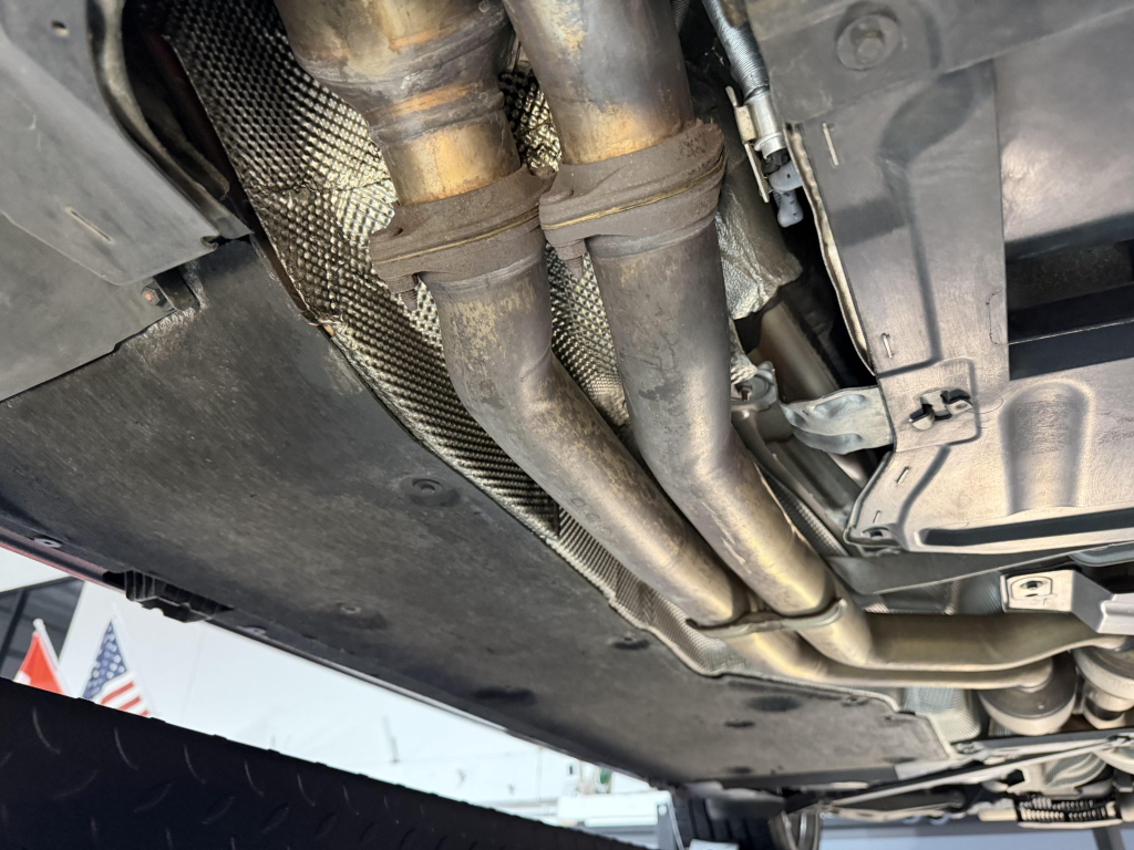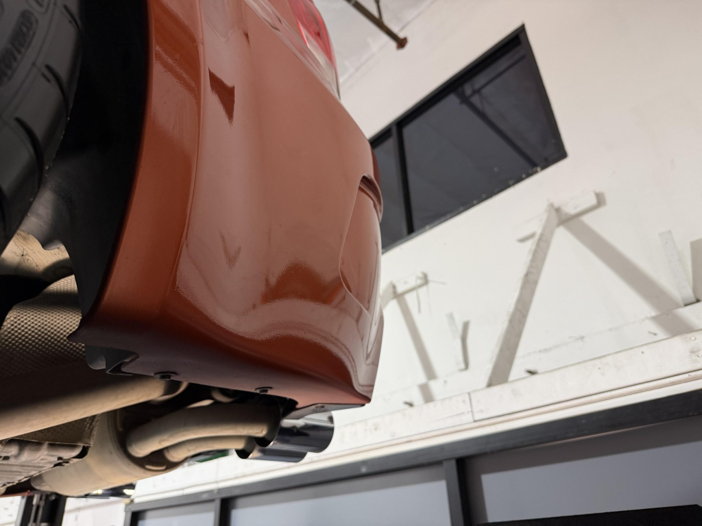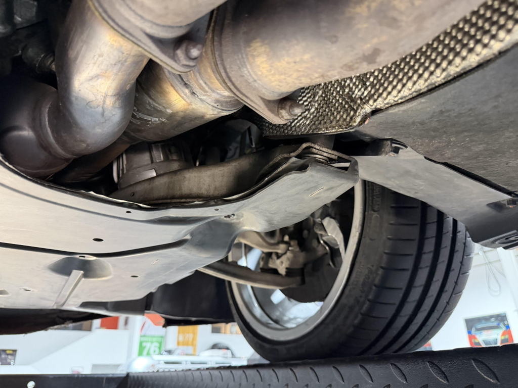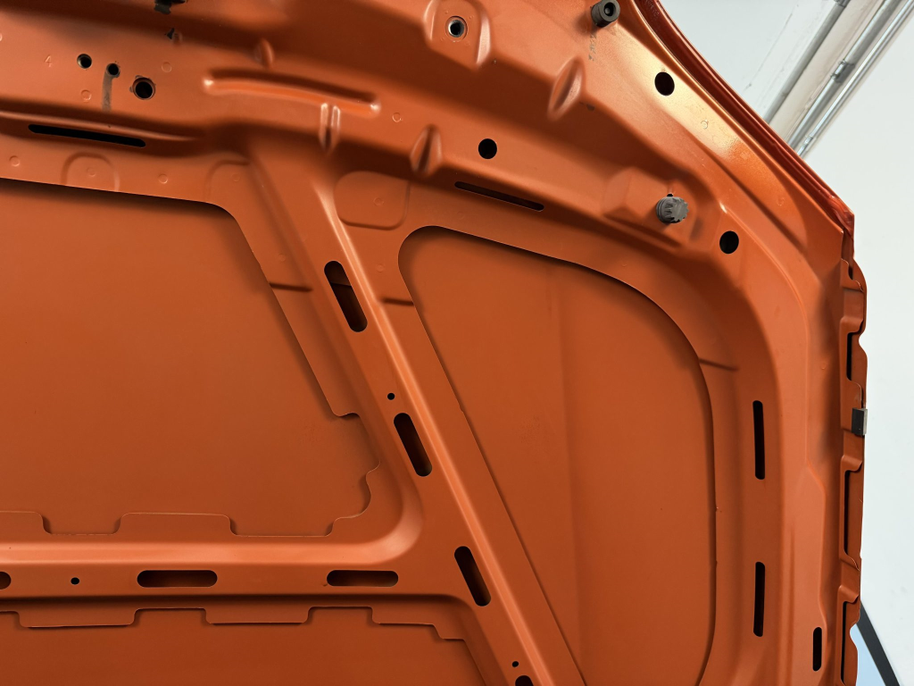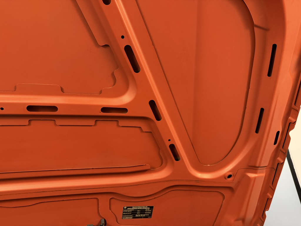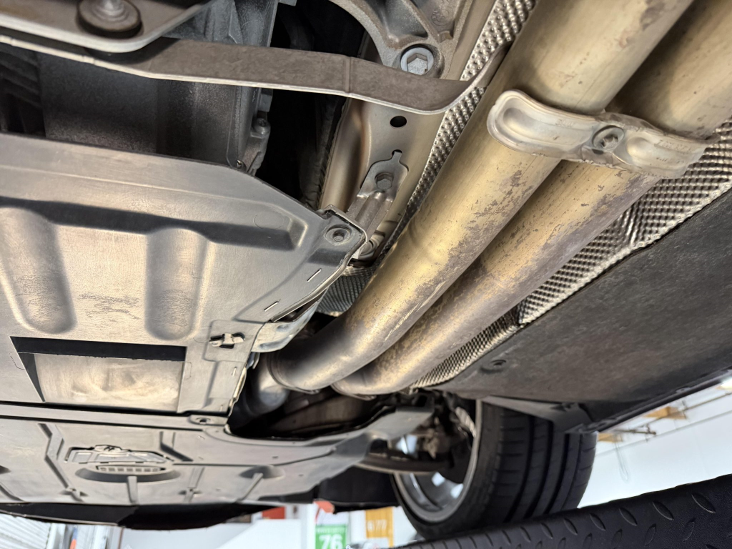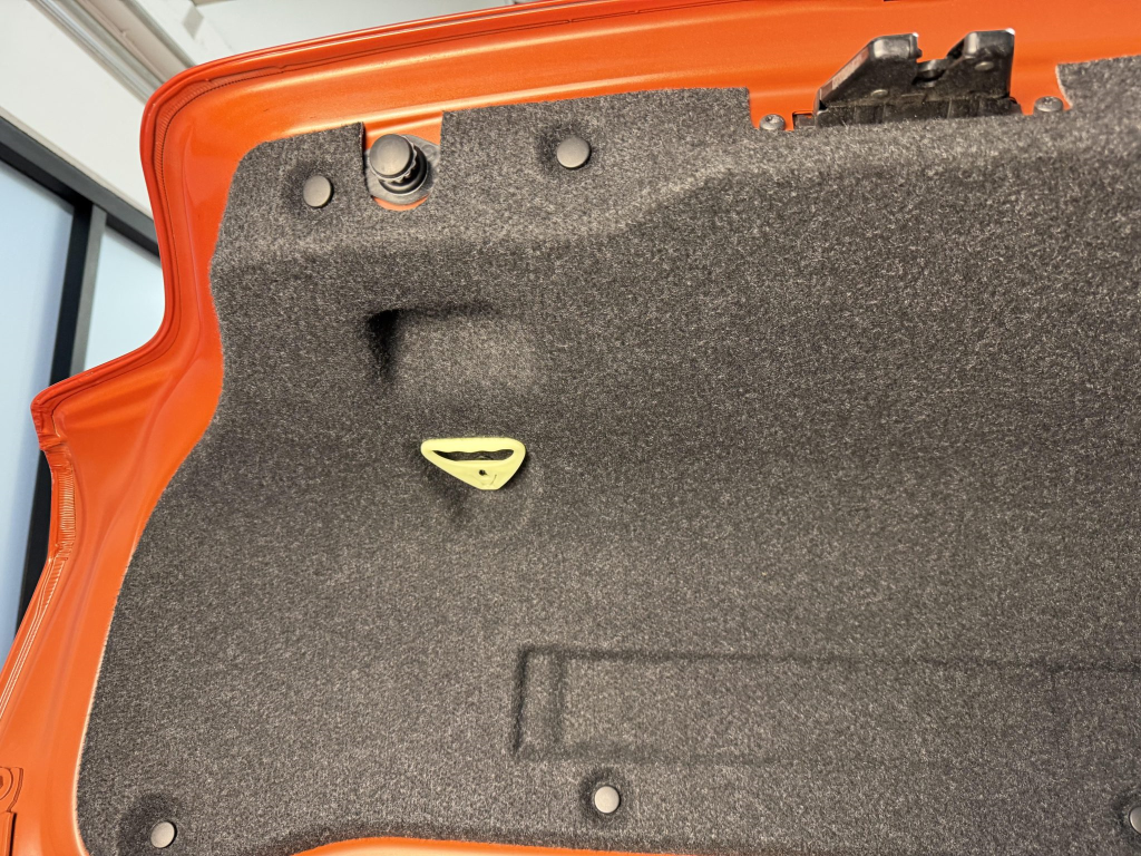 This example is one of 435 cars finished in Valencia Orange Metallic (B44) for the North American market, and features model-specific bumper covers, side skirts, flared fenders, and quad exhaust outlets. Additional details include xenon headlights, rain-sensing wipers, a trunk lid spoiler, and LED taillights. A January 2018 entry on the Carfax report lists “minor damage” to the front left corner, while a subsequent entry from December 2021 lists “minor damage” to the front. The bumper covers and roof are said to have been refinished, and close-up photographs of the exterior finish and trim are shown in the gallery below.