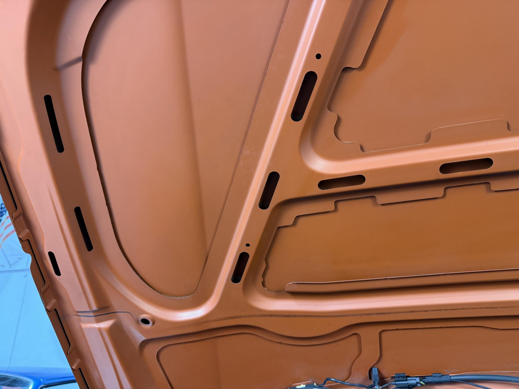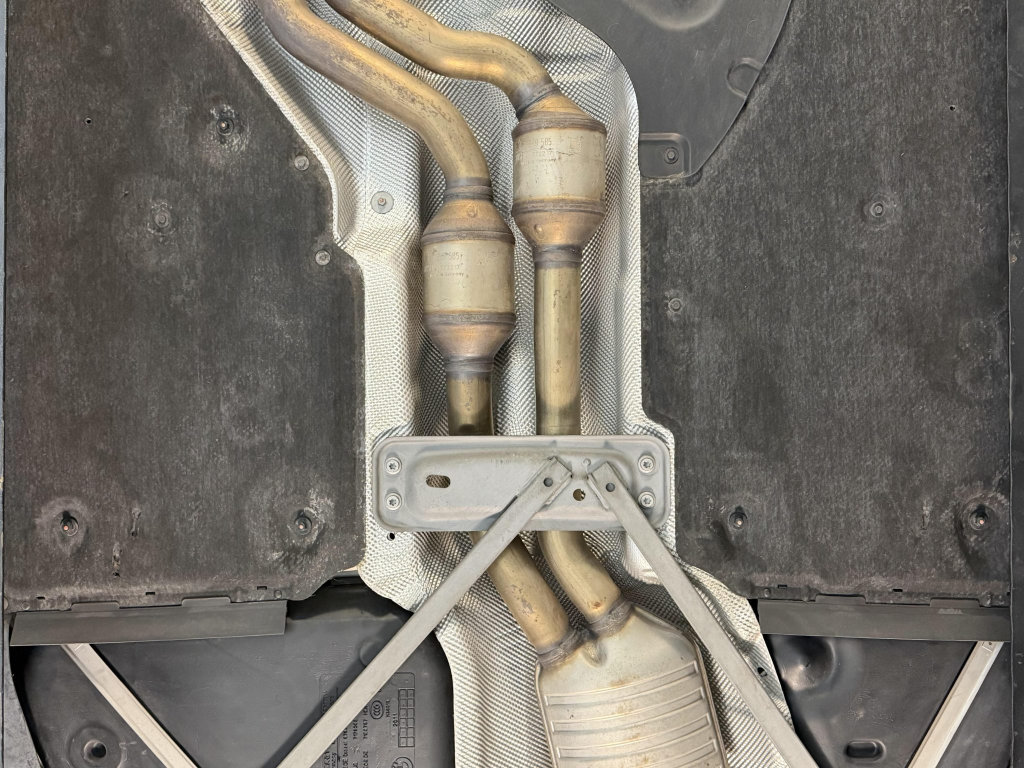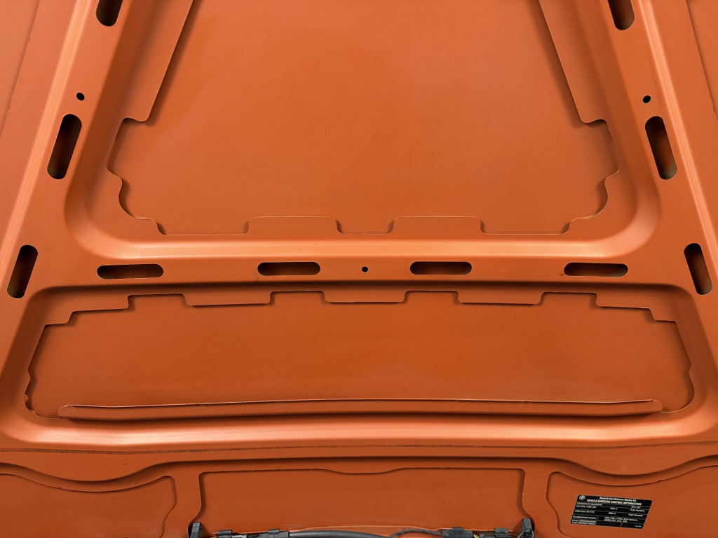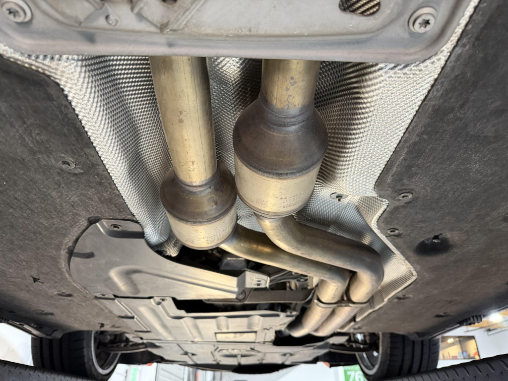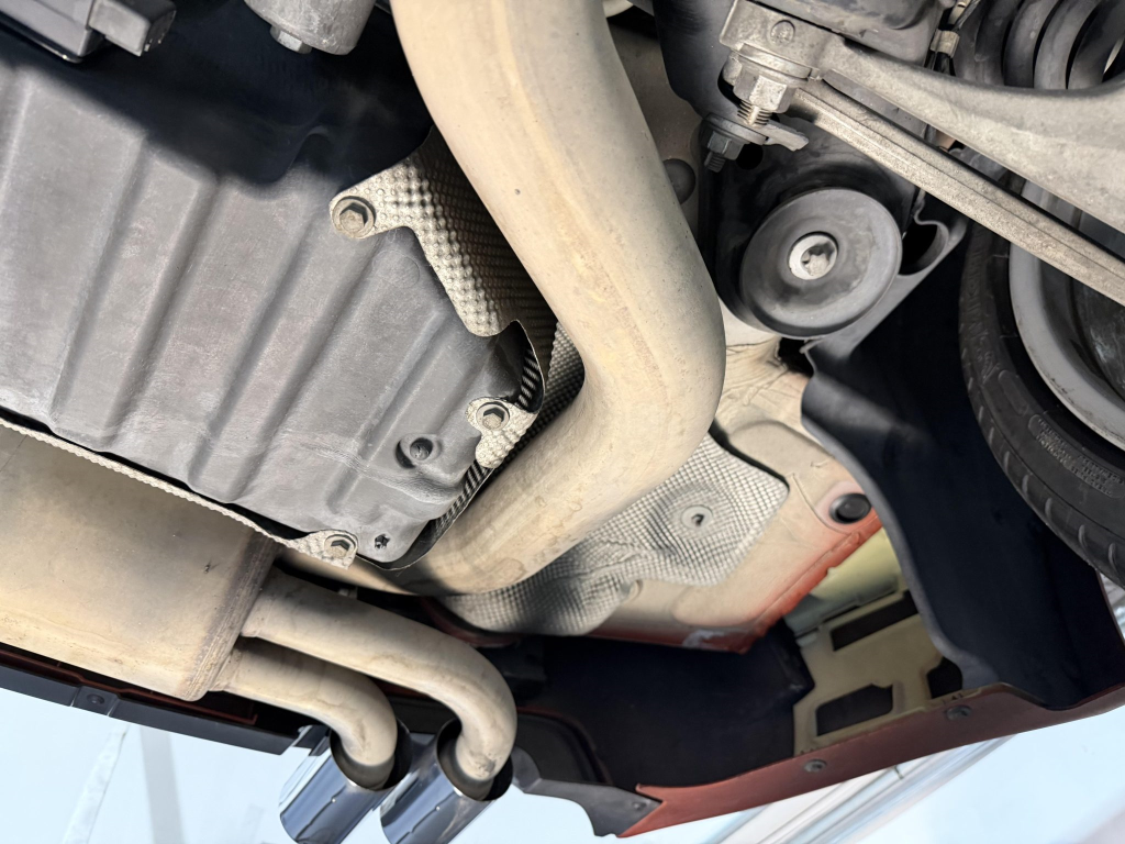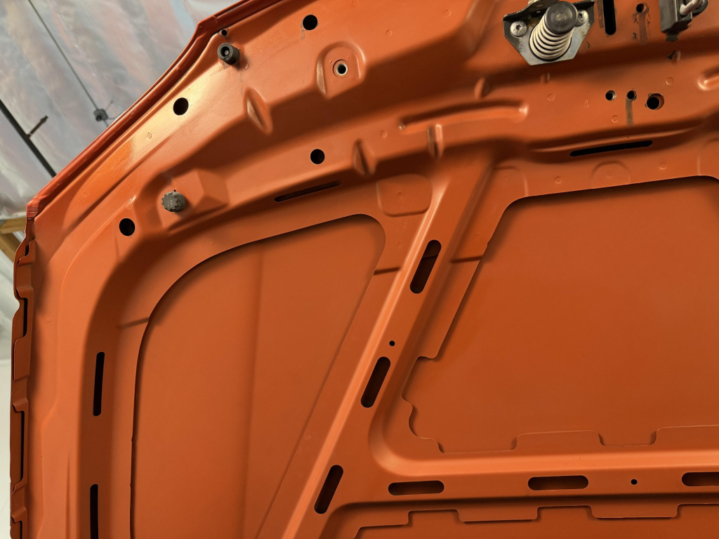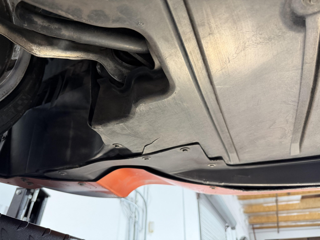 This example is one of 435 cars finished in Valencia Orange Metallic (B44) for the North American market, and features model-specific bumper covers, side skirts, flared fenders, and quad exhaust outlets. Additional details include xenon headlights, rain-sensing wipers, a trunk lid spoiler, and LED taillights. A January 2018 entry on the Carfax report lists “minor damage” to the front left corner, while a subsequent entry from December 2021 lists “minor damage” to the front. The bumper covers and roof are said to have been refinished, and close-up photographs of the exterior finish and trim are shown in the gallery below.