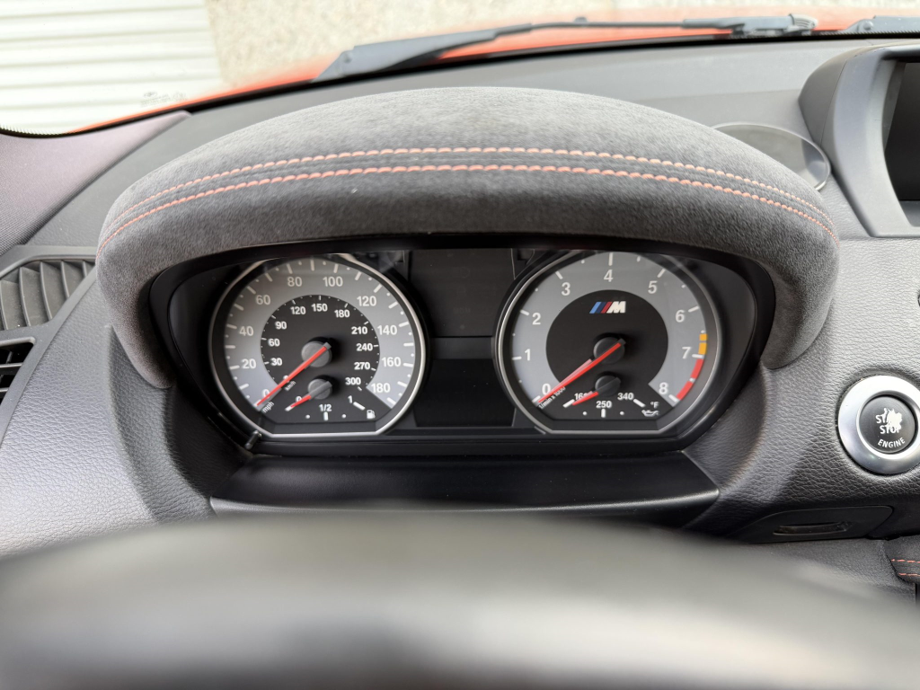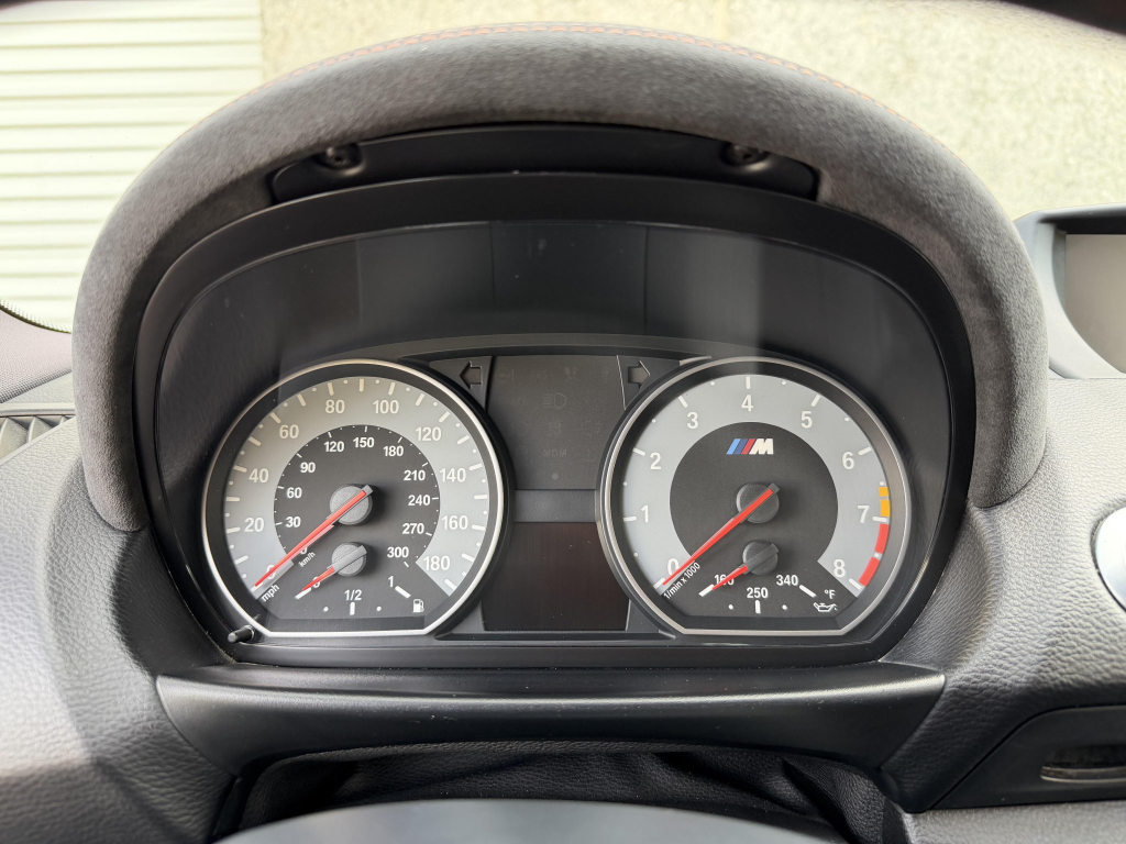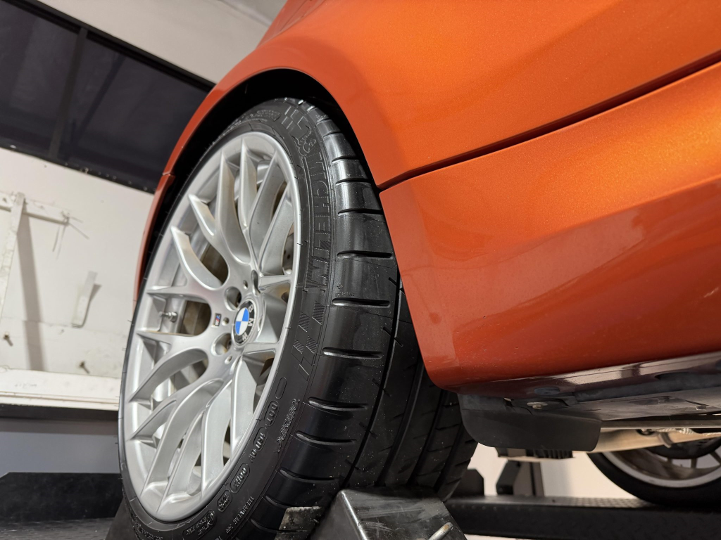 The 19″ Style 359M alloy wheels are mounted with Michelin Pilot Super Sport tires. The 1M utilizes suspension and braking components sourced from the contemporary M3 and features Dynamic Stability Control (DSC) with M Dynamic Mode (MDM) as well as Dynamic Brake Control. Stopping power is from black-finished calipers over cross-drilled and ventilated rotors at each corner. The brake fluid was changed in 2025.